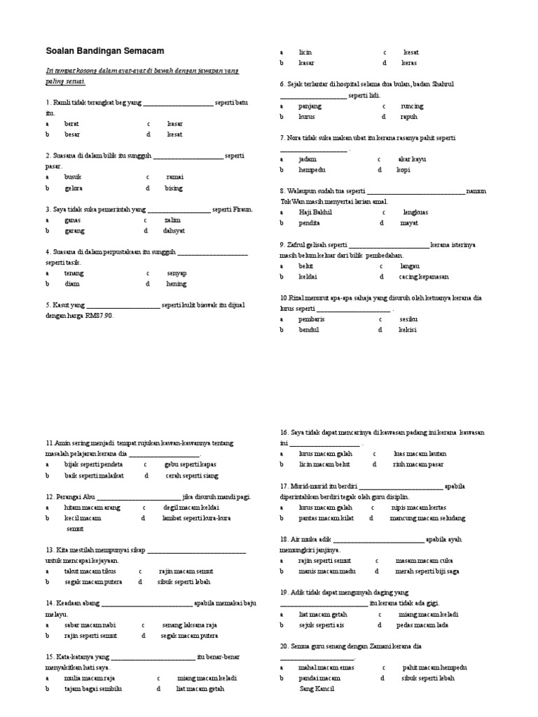 Madu kapuk atau disebut madu randu memiliki rasa manis sedikit asam. Indonesia sendiri memiliki puluhan jenis madu asli yang berkualitas. Padankan ayat dengan subjek yang betul berpandukan gambar.
